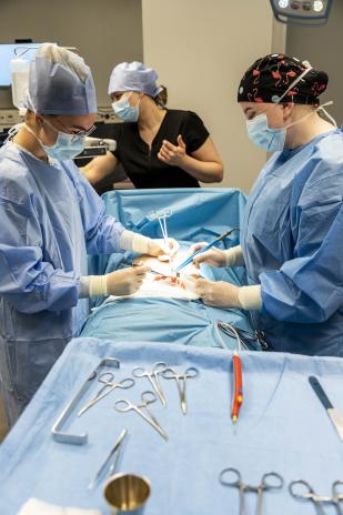 - laparaskopiskās prasmes izmantojot gan trenažierus (LapBox), gan virtuālās realitātes simulatorus (LapSim, LapMentor),